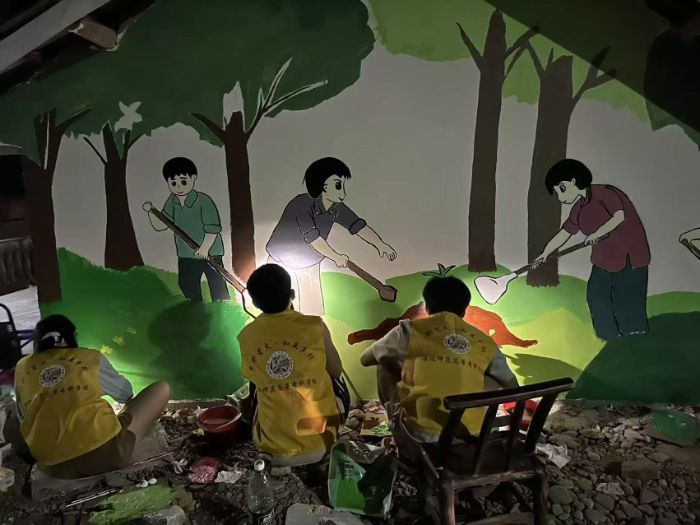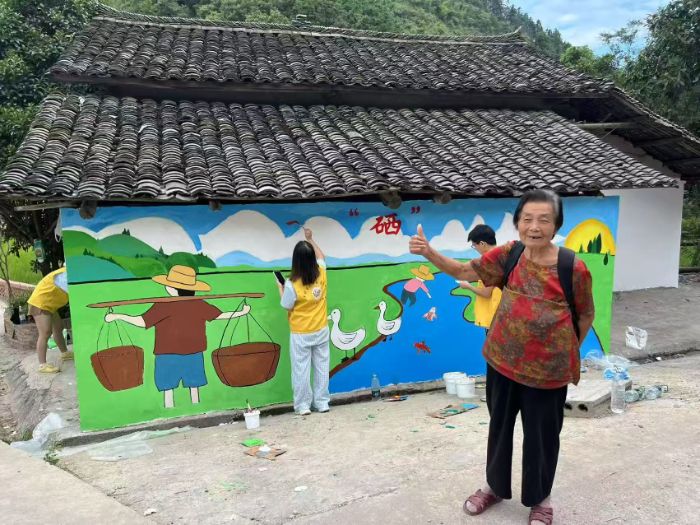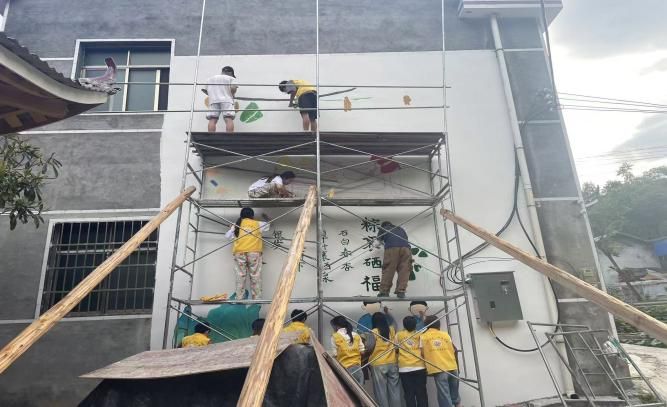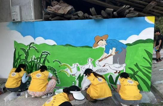 目前,實踐團成員正全力進行墻繪作品的收尾工作,預計一天內即可完成5面鄉村振興主題墻繪的全部創作,讓鄉村文化以視覺形式生動呈現。