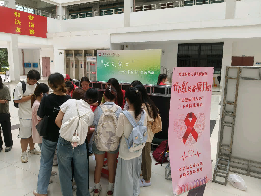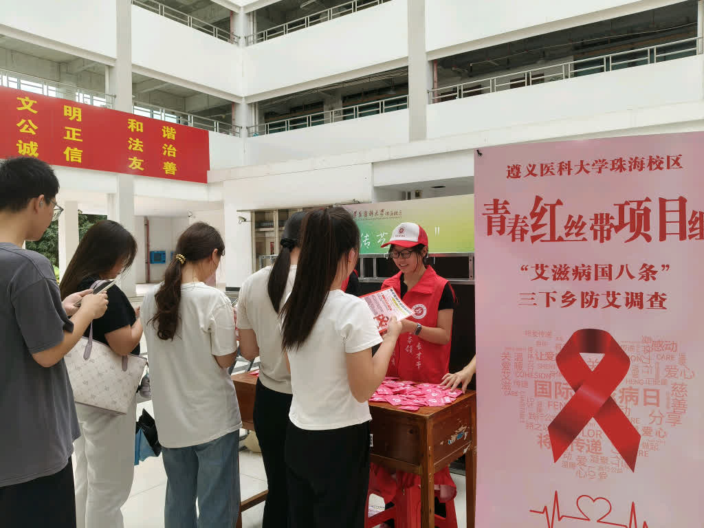 為探索珠海市大學生對于國八條的認知水平,提高校園防艾宣傳工作針對性和有效性,為珠海市大學生防艾宣傳工作貢獻遵珠學子力量,遵義醫科大學珠海校區青春紅絲帶項目組積極開展防艾宣傳實踐活動,于6月29日-7月4日在遵義醫科大學珠海校區,以及7月9日 在暨南大學珠海校區開展了為期7天的專題實踐與調研活動。通過主動講解、發放宣傳手冊,問卷調查等形式,深度探究了珠海市內不同專業、不同年級的大學生與國八條知曉率的相關性。實踐期間,組員不僅向大學生普及了國八條、艾滋病防治知識等內容,更通過一些趣味講解和小游戲,引導大家科學認識艾滋病,筑牢青春健康防線。