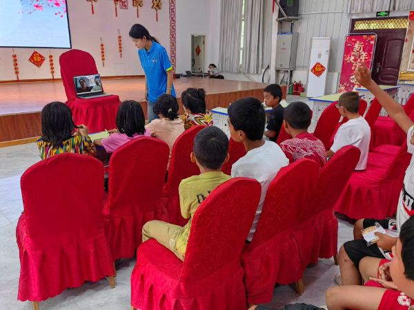 山東琴書課上,團(tuán)隊邀請山東琴書非遺傳承人羅曉靜教授通過視頻連線的方式,與喀什小朋友面對面交流,羅教授向孩子講述了山東琴書的主要傳承方式及堅守的傳承故事并帶領(lǐng)學(xué)生為小朋友們展示了《偷年糕》片段,團(tuán)隊志愿者與當(dāng)?shù)匦∨笥熏F(xiàn)場學(xué)唱。