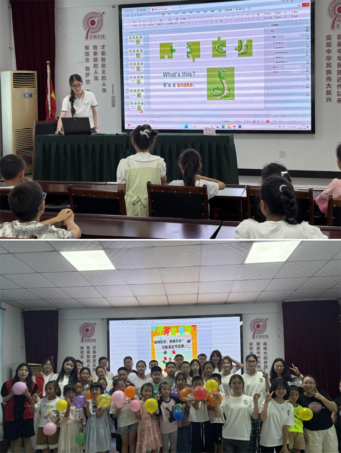 活動中,實踐團堅持“全維度滋養”理念,精心設計了涵蓋基礎學科、科普教育、文化體驗和素質拓展四大類豐富課程,累計開課60余課時,服務全興村青少年兒童100余人次,為當地兒童打造了一個融合知識、趣味與實踐的“多彩暑期”。其中,基礎課程包括啟蒙英語、智慧數學、魅力語文等,幫助孩子們在趣味游戲中鞏固學科知識;科普課程則通過趣味科學、AI科學等內容,激發孩子們的科學興趣,培養創新思維;在文化課程中融入崇州紅色歷史、“廖家木雕”省級非遺文化,增強孩子們對家鄉歷史文化的理解和認識;依托全興村學習強國主題公園開設手工、體育、心理等素質提升課程,助力孩子們全面發展。