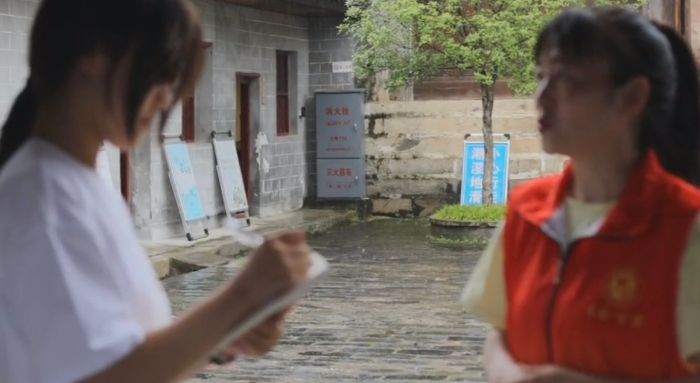 圖為團(tuán)隊成員采訪講解員柯主任。閔文雪供圖