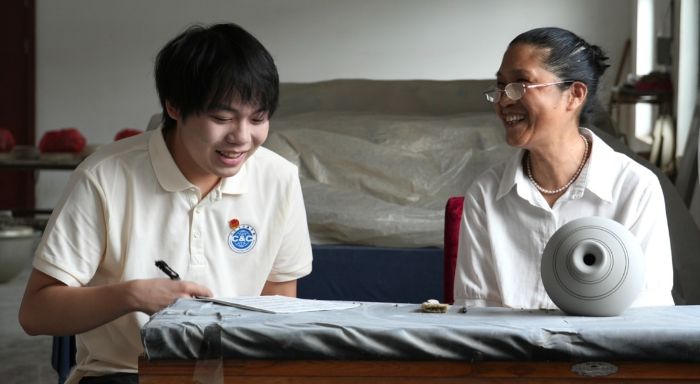 圖為邢淑芹為實踐團成員展示拉胚 王亞辰供圖