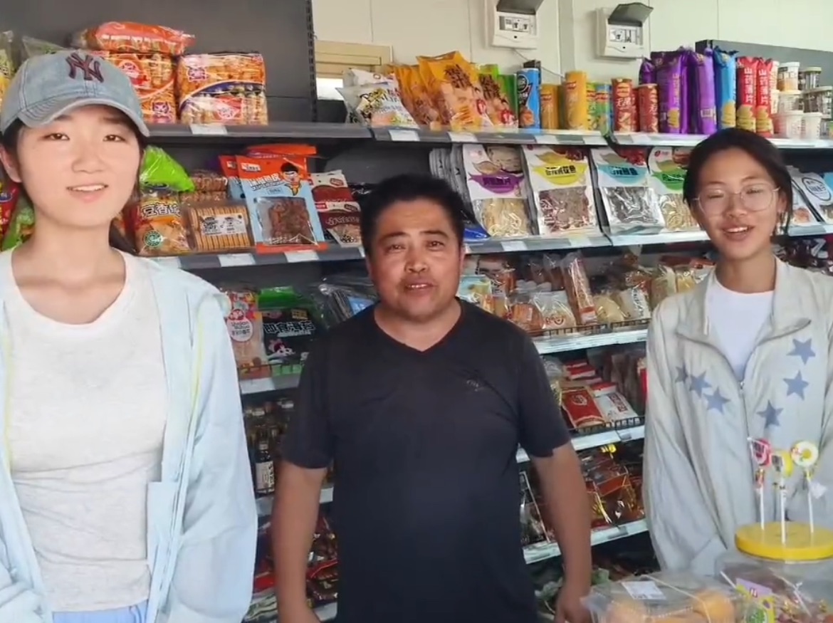 圖為“漁隅勘行”社會實踐隊與超市老板的合照 。耿俊豪 供圖