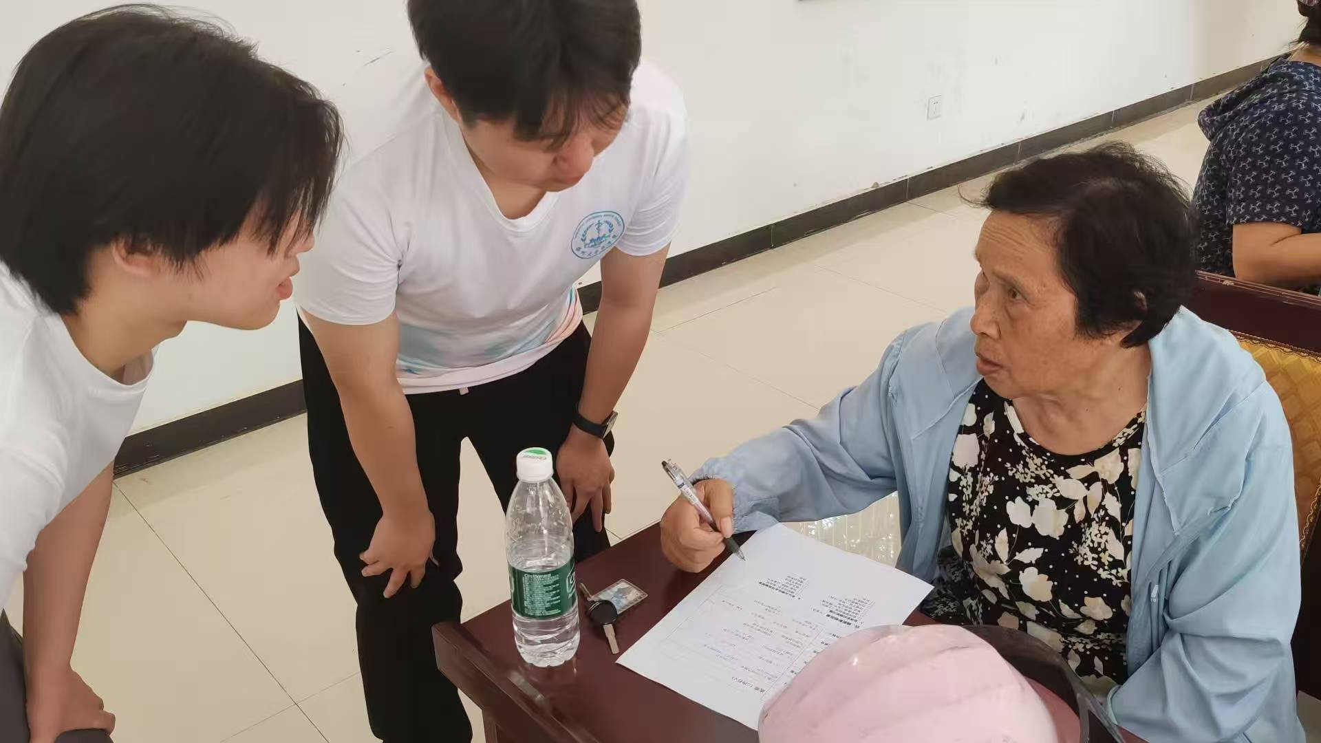 隨后,實踐團開展了健康調研活動。成員們為老人們發放精心設計的問卷,問卷涵蓋睡眠質量、身體基礎健康狀況、日常健康習慣等多個方面。在填寫問卷過程中,老人們遇到不懂的問題,實踐團成員便俯下身,湊近老人,用通俗易懂的語言為其解釋,確保問卷信息的準確收集。通過這些問卷,實踐團旨在深入了解家鄉老年群體的健康現狀與需求,為后續更有針對性地開展健康服務提供依據。