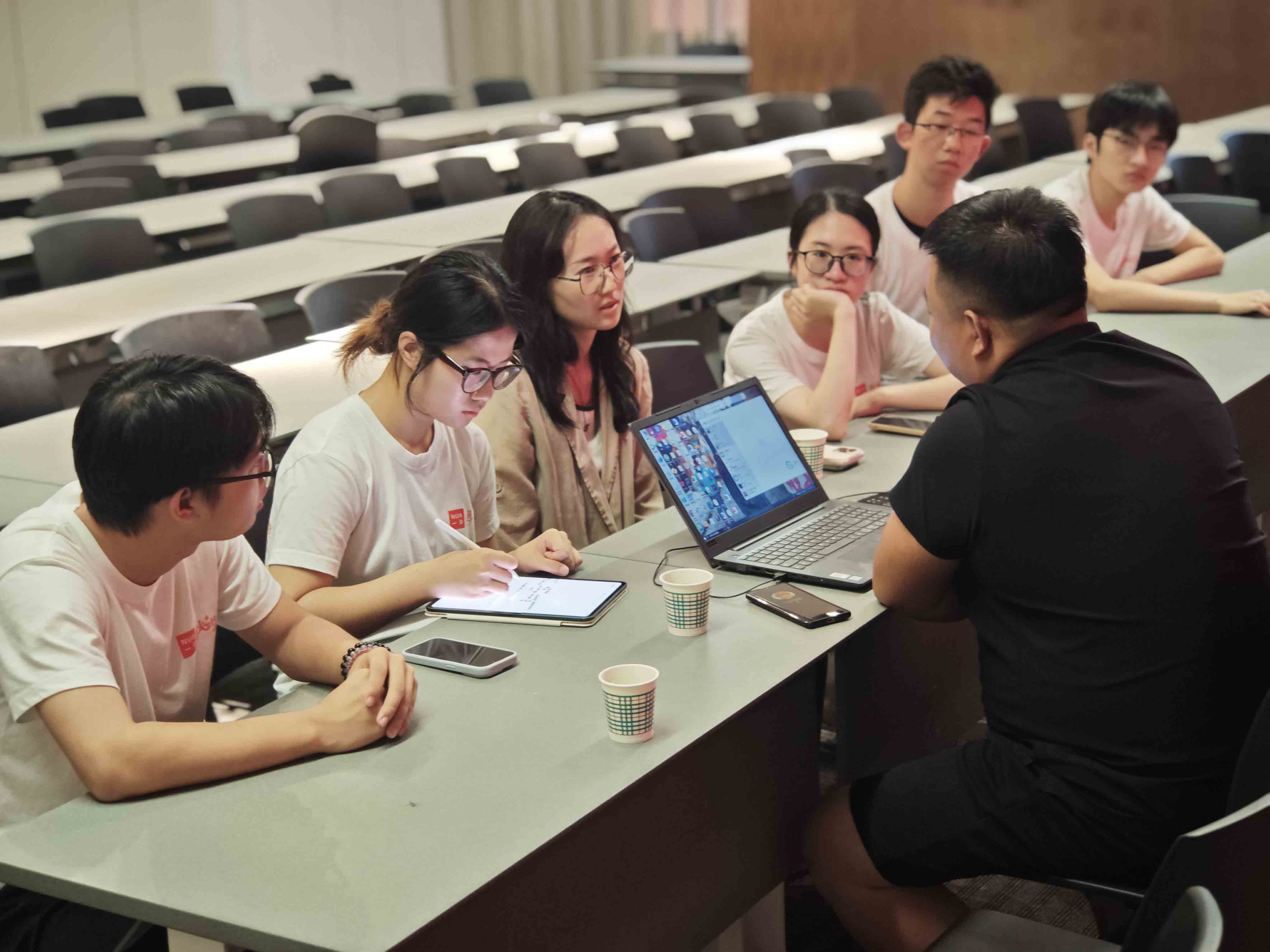 圖為實(shí)踐團(tuán)成員圍繞當(dāng)?shù)靥厣r(nóng)產(chǎn)品設(shè)計(jì)需求進(jìn)行討論。 安哲辰 供圖