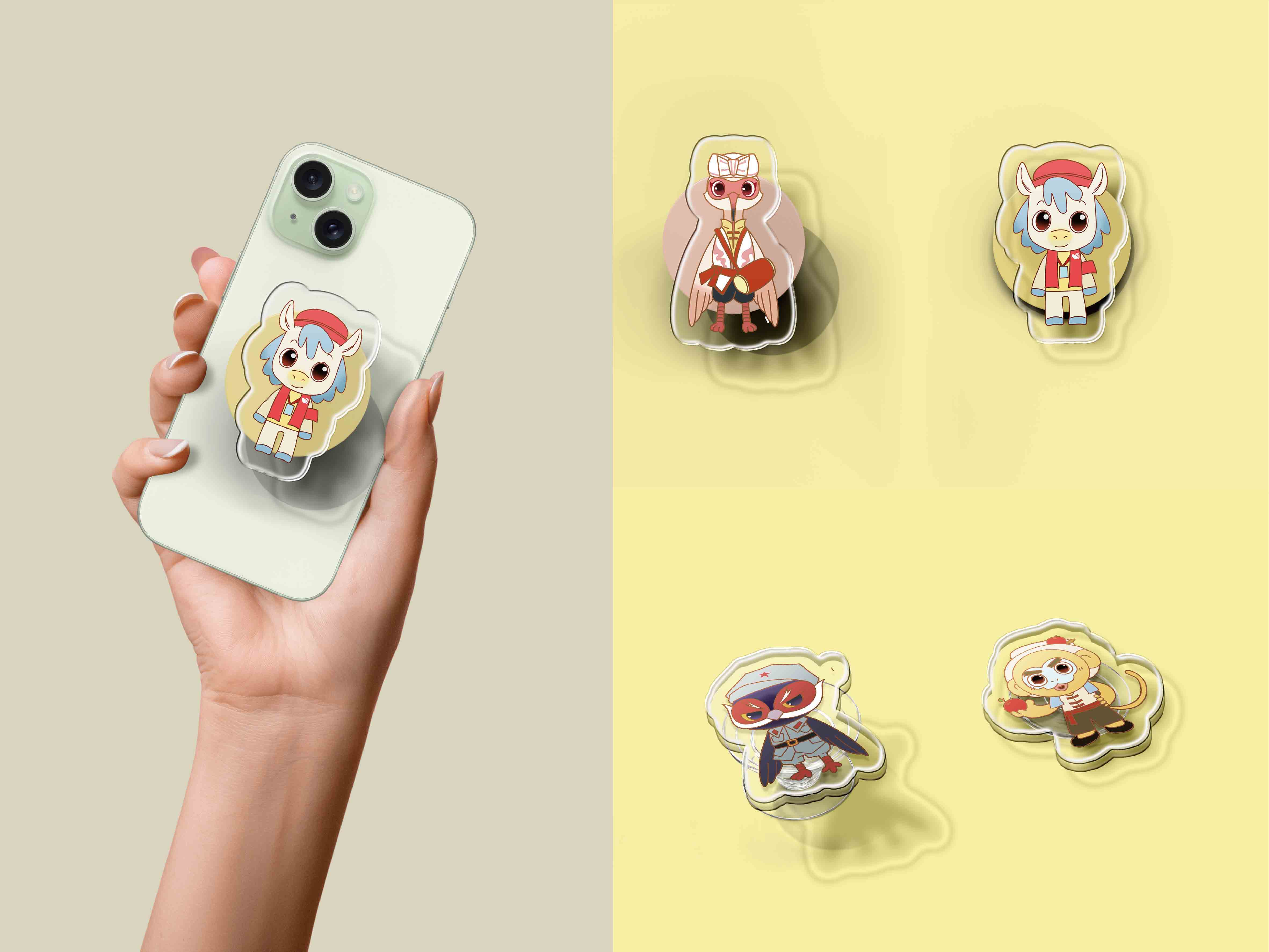 圖為實(shí)踐團(tuán)成員圍繞IP形象衍生的手機(jī)支架文創(chuàng)。張雨彤 供圖