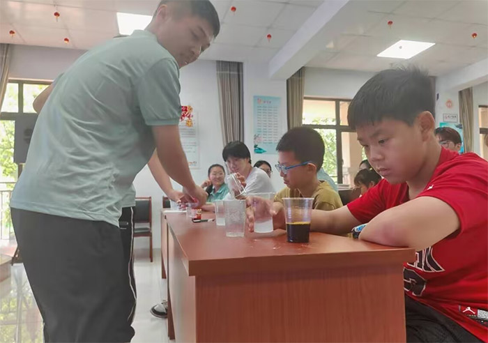 圖為小朋友們在觀察實驗現象。胡盛陽 供圖
