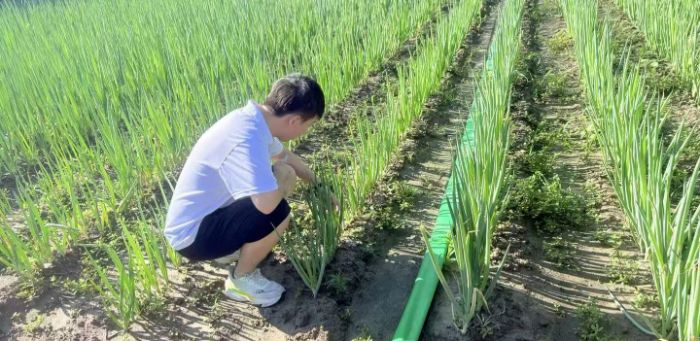 調研中,團隊成員不止于 “聽”,更重于 “行”。在蔥田,成員蹲下身子,觀察蔥苗長勢、查看土壤墑情,將理論知識與實際結合;香瓜、西瓜棚內,仔細記錄植株健康狀況、果實發育進程 。親身參與農事,讓大家體會到農業生產的不易,也加深了對 “粒粒皆辛苦” 的理解,在實踐中厚植知農愛農情懷,把擔當融入每一次彎腰、每一回觀察。