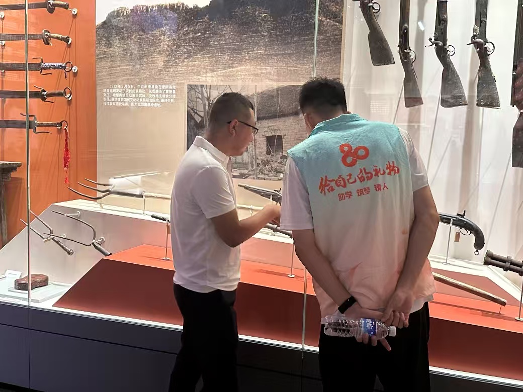 圖為實踐團成員聆聽講解員介紹革命歷史