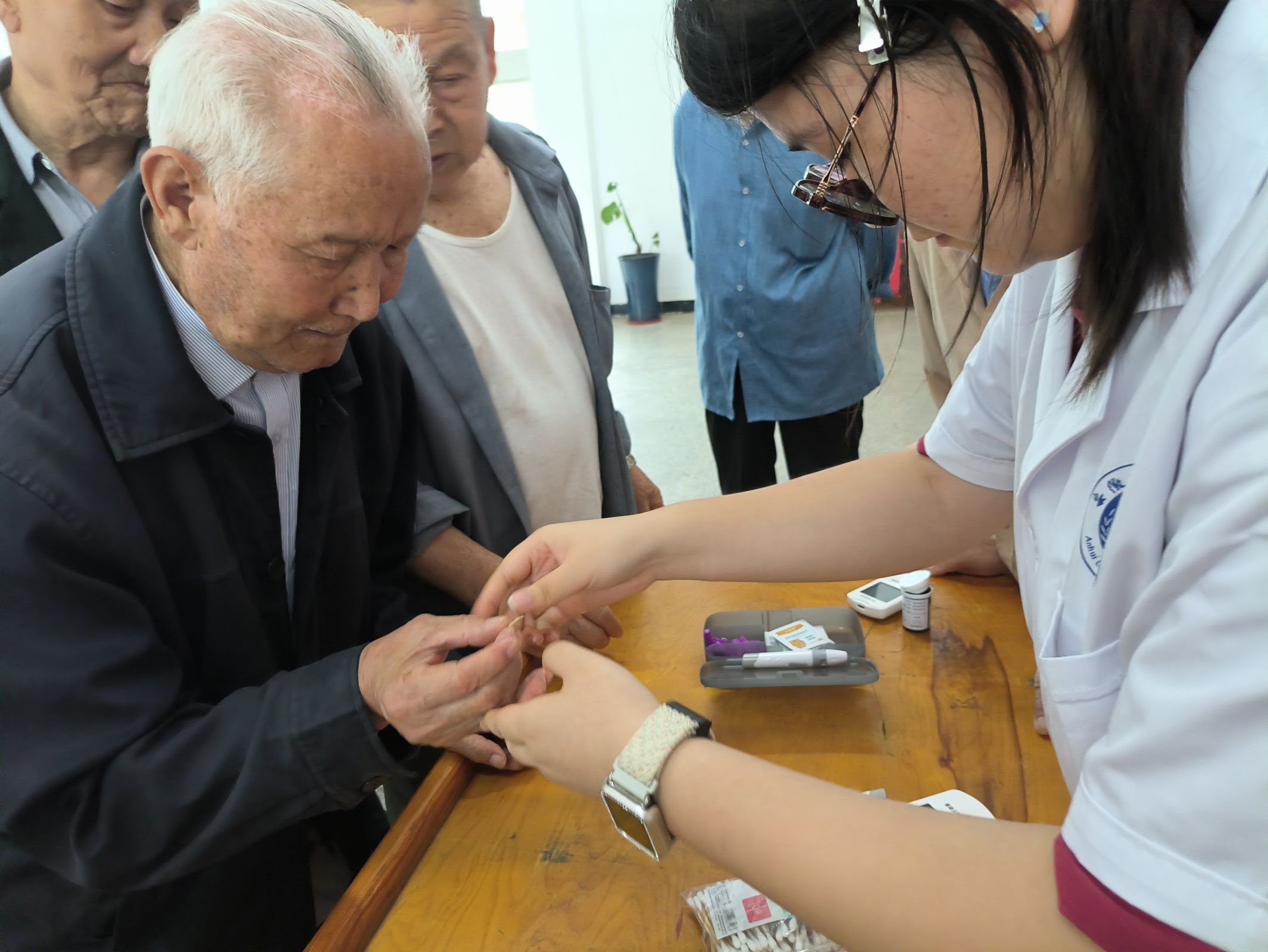 圖為志愿者給老人測血糖 吳冰冰 供圖