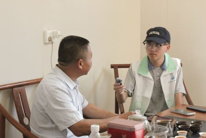 圖為實踐隊員采訪竹加工廠負責人 鄭嘉楠攝