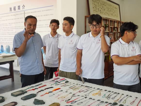 實踐隊實地探訪了中國洮硯電商中心,調研國家級非物質文化遺產——洮硯制作技藝。卓尼縣洮硯協會會長,國家級非物質文化遺產(洮硯制作技藝)州級代表性傳承人盧保勝先生為隊員們進行了系統、詳盡的講解,深入闡釋了洮硯的悠久歷史、獨特工藝和藝術價值。盧會長在談及當前洮硯技藝傳承面臨技藝斷層、市場拓展等挑戰時強調,“需要年輕一代的我們發掘中華優秀傳統文化的魅力,擔當起接續文化根脈的責任”,引發了隊員們的強烈共鳴和對非遺保護傳承的熱烈討論。隨后,洮硯雕刻大師洪緒龍先生現場展示了精湛的雕刻技藝,讓隊員們近距離感受到了中國四大名硯之一——洮硯“溫潤如玉、呵氣成墨”的特質與魅力。通過本次非遺參觀體驗活動,隊員們親身體驗到傳統工藝的“溫度”,深刻領悟到“匠心”背后所蘊含的文化堅守,對于在“鑄牢中華民族共同體意識”主線引領下,新時代各族青年如何賡續中華文脈,更好擔當起中華文化傳承與創新使命也有了進一步的思考和認識。