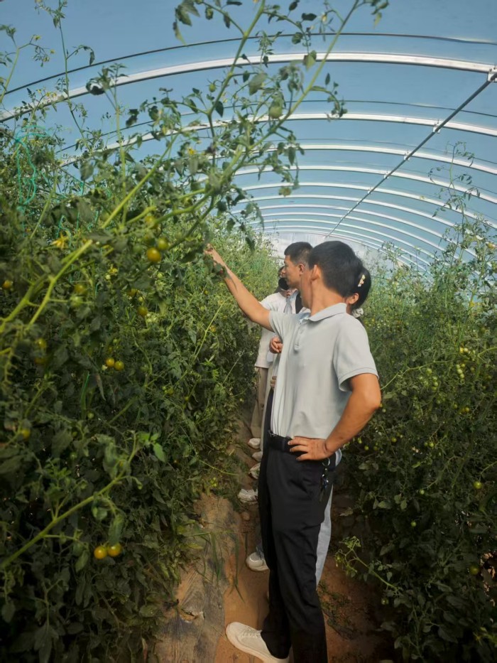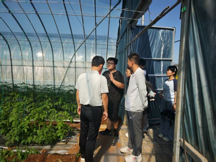隨后,在公司負責人帶領下,實踐隊前往洛南放心菜種植基地,在田間地頭參與牛糞有機肥翻堆作業,詳細記錄發酵參數與操作要點,與基地技術人員探討有機肥對土壤改良的具體作用。在圣女果種植區,隊員們精準記錄株高、葉片數等生長數據,并與農技專家座談,深入學習番茄抗病種植技術與病蟲害防治經驗。