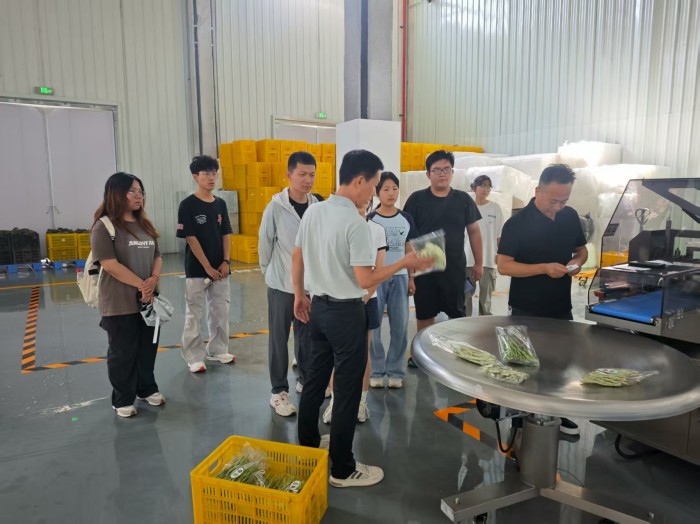 實踐團隊首站走進洛南縣康勝潤農業科技有限公司,在企業技術人員引導下,系統學習“1+6”產業鏈布局,通過案例解析掌握當地農業產業架構與發展模式。隊員們深度參與“一菜一碼”追溯系統實操,熟練掌握信息錄入、全程追蹤等關鍵流程;隨后進入冷鏈車間跟崗,熟悉預冷、分揀、倉儲全流程,并參觀安全質檢中心與倉儲配送中心,直觀感受科技在農產品質量管控、產后處理環節的應用。團隊向企業展示了自主搭建的系統演示視頻,圍繞功能優化、場景適配等與技術人員深入交流,收集到諸多建設性反饋。