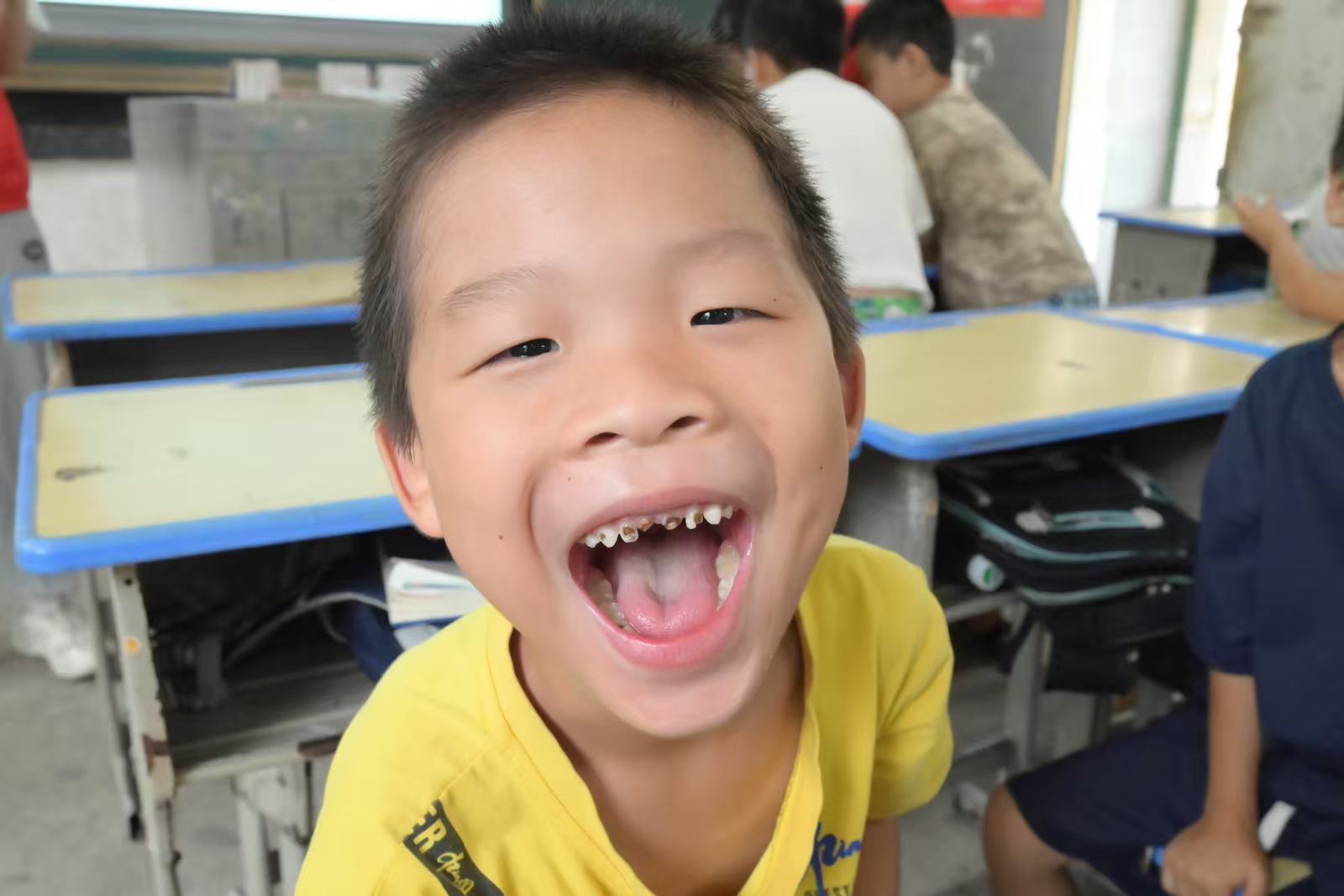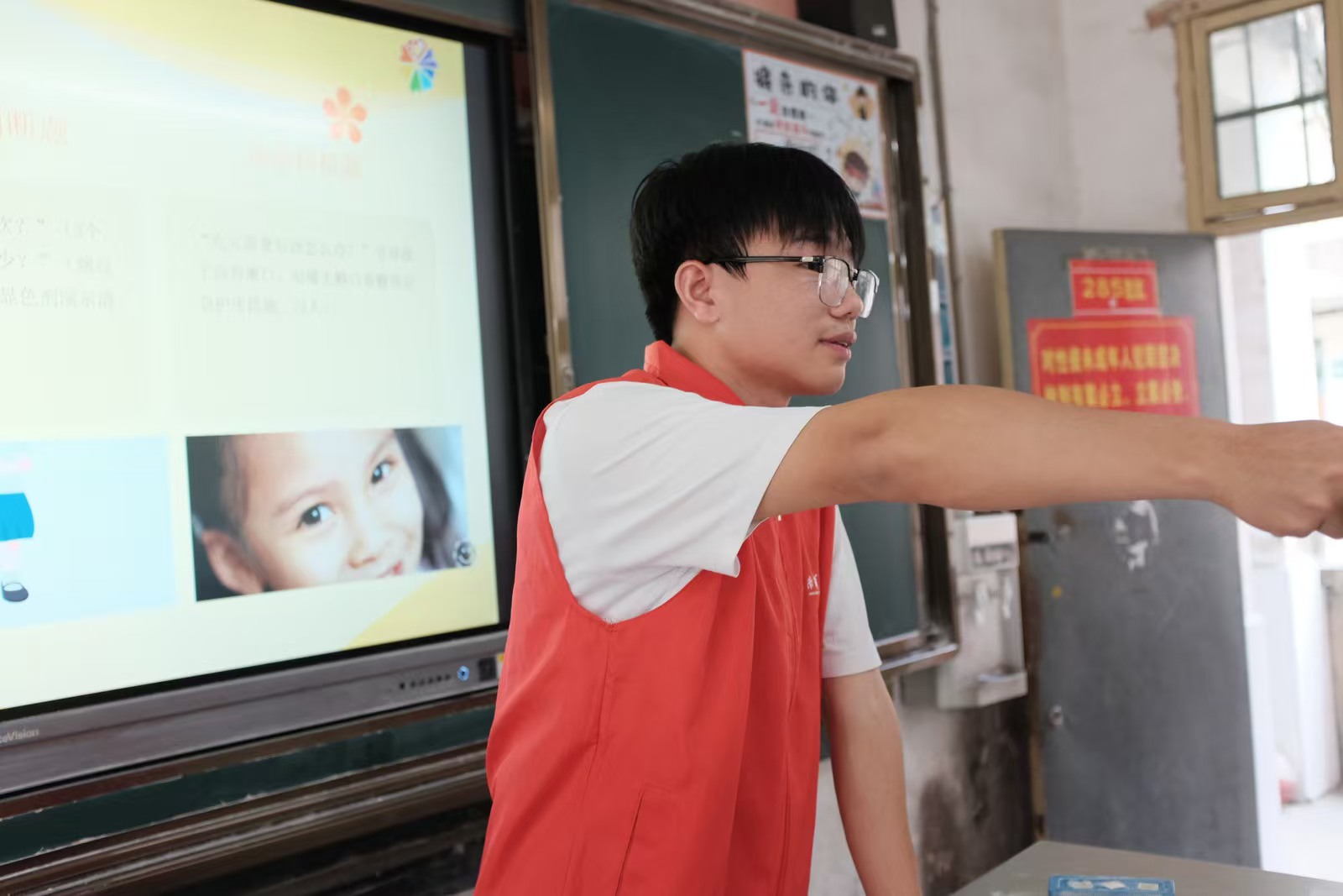 結營前一天,我們想辦個小演出。天剛蒙蒙亮,風里帶著濕意,我們踩著露水去布置場地。六點多的風掠過低矮的屋檐,孩子們陸陸續續來了,腳步聲輕悄悄踩在校園的水泥地上,帶著對這場演出的稀罕。朝陽漫過教學樓時,我們坐在最后排,看前面擠擠挨挨的四十多個小身影。先讓孩子們表演準備的節目,風把他們的歌聲送得穩穩的,我們跟著拍手;接著我們展示這些天拍的照片,有上牙齒健康課的認真模樣、有在學生家廚房圍坐吃飯的熱鬧場景,孩子們指著照片直喊“這是我”,小手舉得老高——那些就著手機查資料、在宿舍熬夜改教案的夜晚,早把對這些孩子的在意,揉進了風里。我忽然懂了“風的方向”:不是往遠處吹,是他們心里對知識的盼,是我們踏進校園時的那股熱勁。
