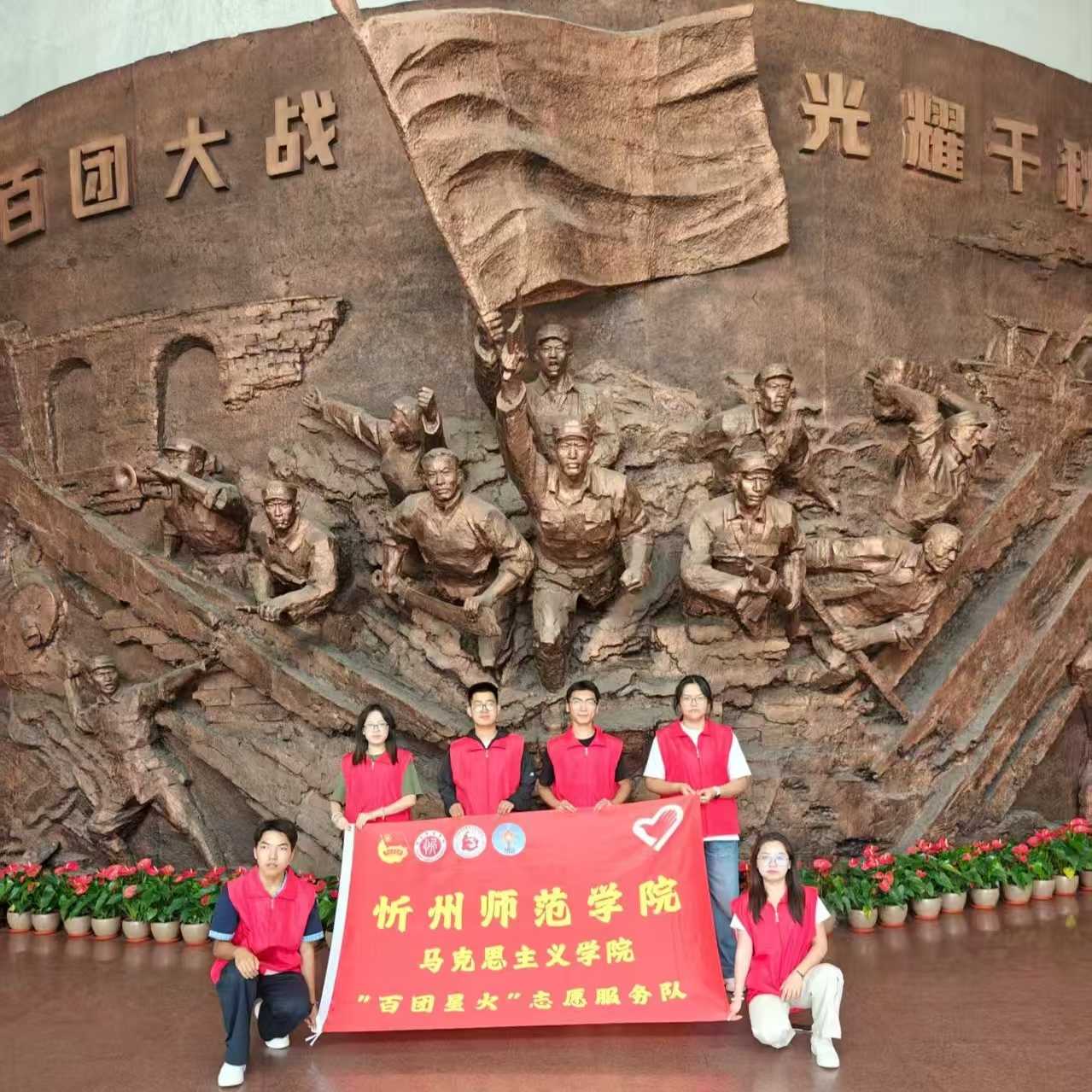 近日,忻州師范學院馬克思主義學院百團星火志愿服務隊一行6人前往山西省陽泉市百團大戰紀念館開展學習調研活動。走進紀念館,一張張泛黃的照片、一件件銹跡斑斑的武器、一段段詳實的文字記載,生動還原了1940年百團大戰中八路軍戰士浴血奮戰的壯闊場景。在講解員的帶領下,隊員們認真聆聽“破襲正太路”“圍困陽泉城”等戰斗故事,當聽到戰士們在極端艱苦條件下仍堅守陣地、奮勇殺敵的事跡時,隊員們深刻體會到“攻堅克難、敢打必勝”的百團精神背后,是無數先烈用生命鑄就的信仰豐碑。