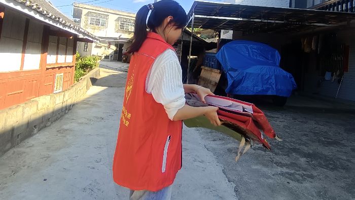 圖為實踐團成員晏文靈在社區登記社區基本情況。晏文靈 供圖