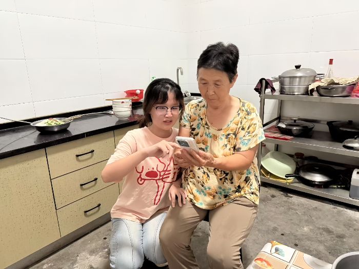 圖為實踐團成員為社區老人科普網絡詐騙常見手段以及預防措施 呂昕怡 供圖