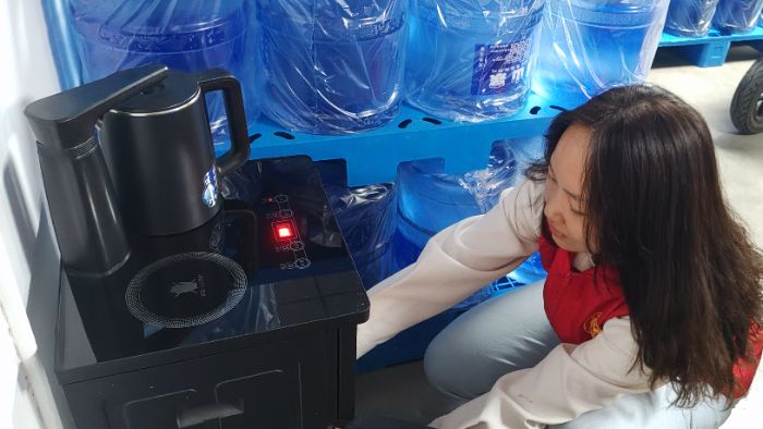 圖為實踐團成員晏文靈在社區幫忙換水。晏文靈 供圖