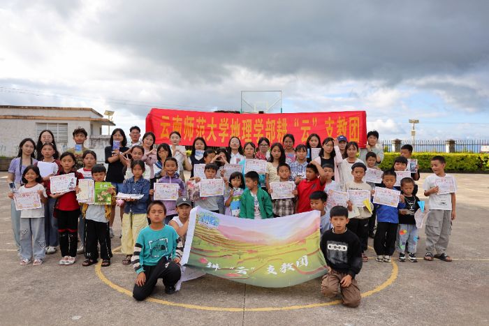 “老師,你們下次還來嗎?”離別的追問里,滿是孩子們的不舍。九天里,孩子們用泥塑捏出地理模型、追著塞來野花、課堂上齊聲應答地理知識的瞬間,成為志愿者心中最溫暖的記憶。志愿者朱琳儀感慨:“孩子們的眼睛像梯田里的水一樣清澈,他們讓我明白教育是共同成長。”志愿者李露佳坦言:“本想帶他們看山外世界,卻被這片土地教會更多——他們的樸素熱情讓我懂得,善意無需刻意準備;舉著小花奔跑的樣子讓我明白,快樂可以如此簡單。”這場相遇中,學習的不只是孩子。