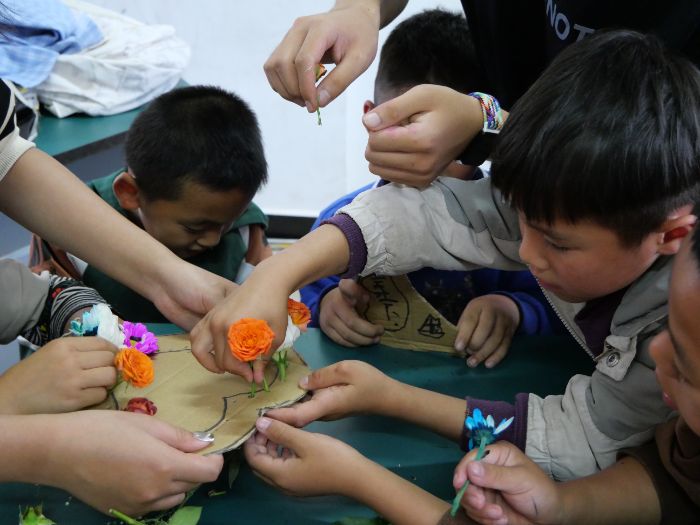 從廢舊紙板變身創意插花的環保實踐中,孩子們領悟了“變廢為寶”的智慧;仰望天空,云朵的形狀和火燒云的絢爛,解碼了氣象與梯田生態的緊密聯系;在“河流爭霸賽”和水循環實驗中,觸摸到了江河的脈搏與自然的永恒法則;透過中國傳統色彩的斑斕畫卷,他們用青花瓷盤和泥塑梯田,描繪出文化與自然的交融之美;而中醫草藥的芬芳與穴位的奧秘,則讓他們懂得了“天人合一”的古老智慧。