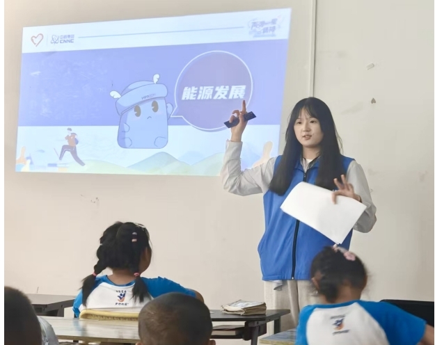 隨后,實踐團帶領孩子們步入“探索核能奧秘”的科學之旅。借助動畫演示和科普模型,實踐團成員用通俗易懂的語言向孩子們闡釋了復雜的核裂變原理和核能發電過程。“想象一下,核反應就像一場永不停歇的接力賽,中子就是關鍵的接力棒,而鈾原子核就是運動員。”成員們用形象的比喻,點燃了孩子們對科學的好奇心。科普講解還延伸到生活中的核輻射知識、國家環境監測體系以及核技術在工業、農業、醫學、環境等領域的廣泛應用,讓孩子們深刻體會到“兩彈一星”事業所奠基的科技力量及其對國計民生的巨大貢獻。
