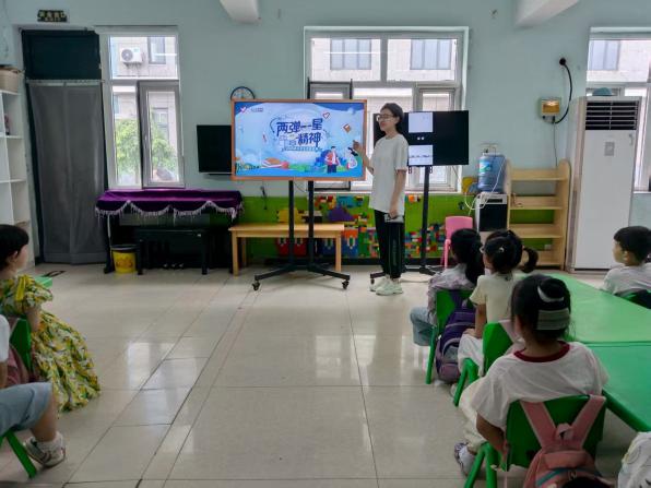 7月16日,實踐團成員奔赴河北省唐山市豐南區高各莊村朵朵幼兒園,開展了“兩彈一星”精神啟蒙活動。針對3-6歲的幼兒認知特點,團隊成員設計了簡單有趣的知識科普與互動游戲,在孩子們幼小的心靈中播撒下科學的種子。