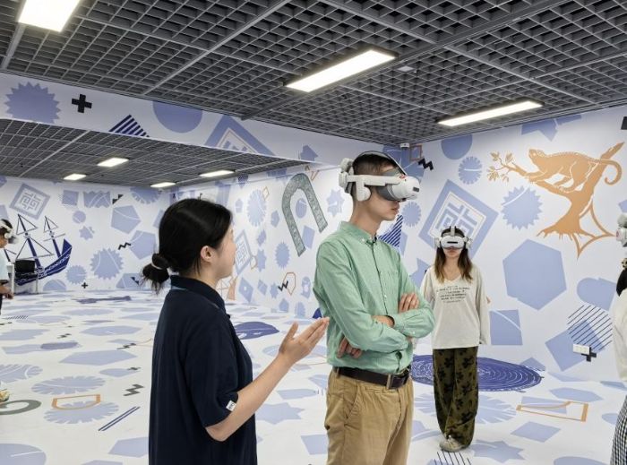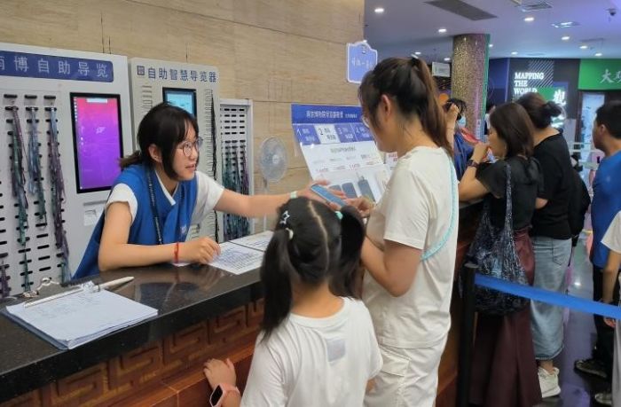 在傳統(tǒng)文化與現(xiàn)代科技交織的南京博物院,南京師范大學(xué)教育科學(xué)學(xué)院“博蘊(yùn)隨園,文教共融”暑期社會實(shí)踐團(tuán)成員的身影成為了一道獨(dú)特的風(fēng)景線。這個(gè)夏天,他們兵分兩路:一隊(duì)融入南博日常服務(wù)網(wǎng)絡(luò),在觀眾引導(dǎo)、咨詢答疑、導(dǎo)覽租賃、行李寄存等崗位上傳遞溫暖;另一隊(duì)則深入前沿科技領(lǐng)域,助力“坤輿萬國全圖VR大空間沉浸式展覽”的籌備與運(yùn)營。此次實(shí)踐不僅體現(xiàn)了高校與博物館在文化服務(wù)與教育實(shí)踐中的深度融合,也為高校學(xué)生提供了寶貴的實(shí)踐平臺。兩個(gè)月的汗水與熱情,共同織就了一張服務(wù)公眾、傳承文明的立體網(wǎng)絡(luò),是南師學(xué)子躬身實(shí)踐的生動(dòng)寫照。