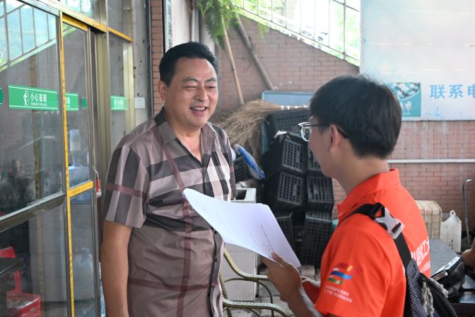 團隊成員與錦屏鎮水果交易中心收購公司進行訪談。楊佳奇 供圖