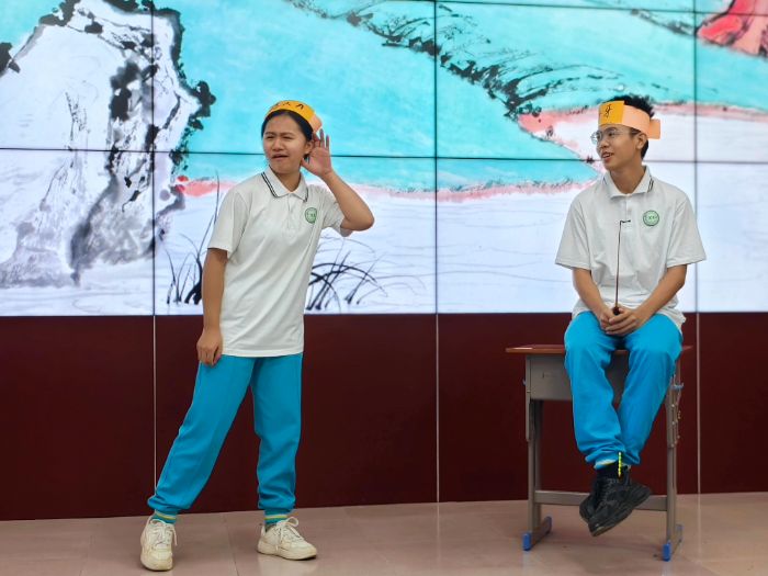 針對鄉村學生英語學習的“畏難情緒”,團隊精選《封神演義》中“比干挖心”“姜太公釣魚”等經典片段,通過文本品讀、角色代入到舞臺呈現的階梯式教學,將語言學習自然融入戲劇實踐。