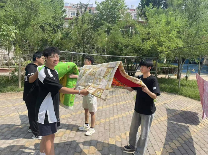實踐團成員們得知老人們平日里晾曬被褥多有不便,便主動行動起來。大家輕輕走進老人房間,小心翼翼地抱出一床床被子,整齊地搭在晾衣繩上。夏日的陽光灑在被子上,也照進了老人們的心間。