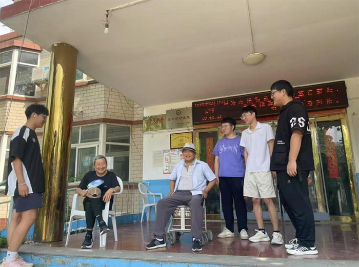 忙碌過后,實踐團成員圍在老人身旁,聽他們講過去故事,嘮生活日常。成員們專注傾聽,偶爾接上幾句,笑聲與話語聲在夏日敬老院里,織就溫馨的家常篇章。