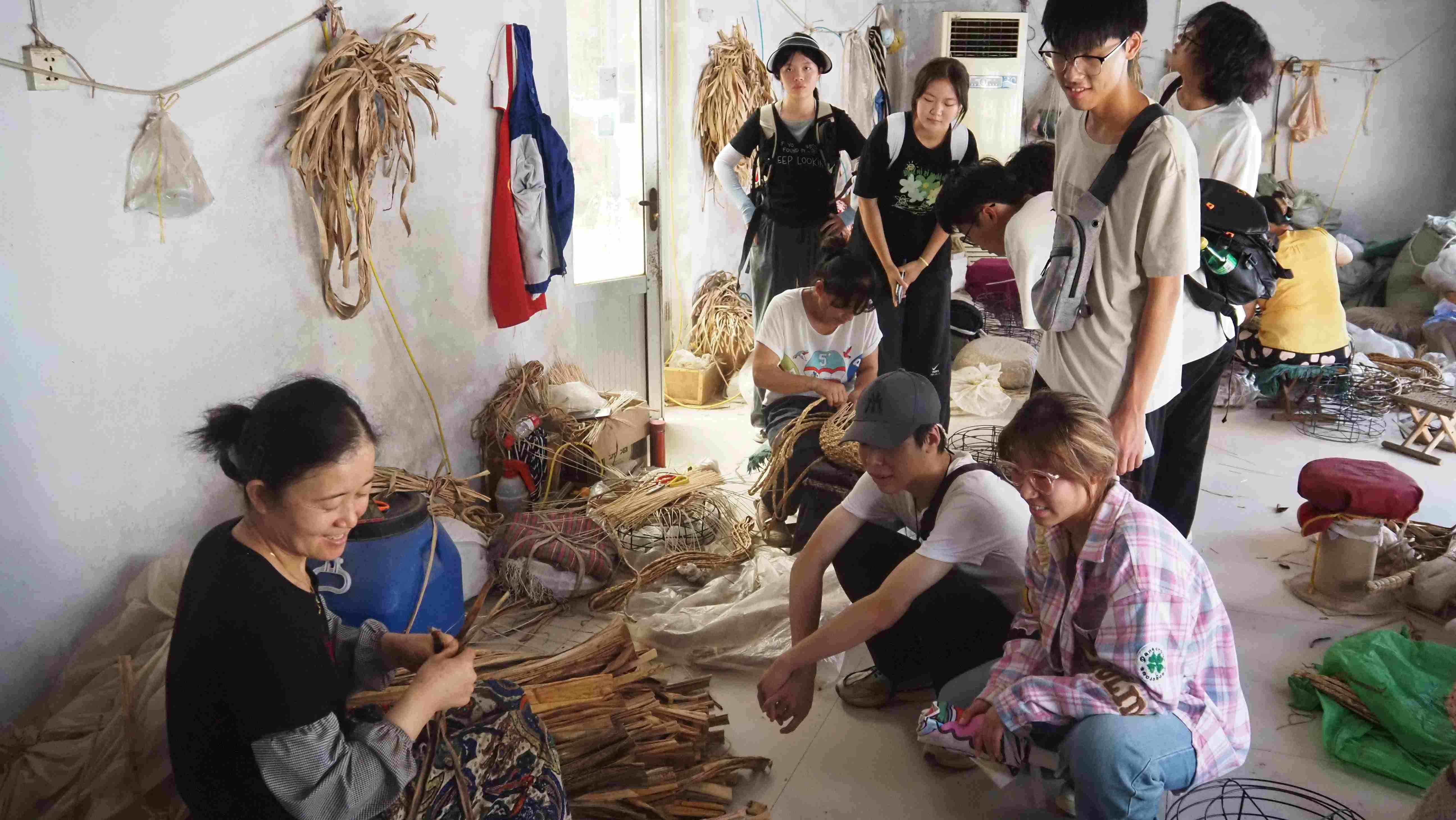 圖1為隊員向非遺傳承人王貴芝女士學習柳編技藝