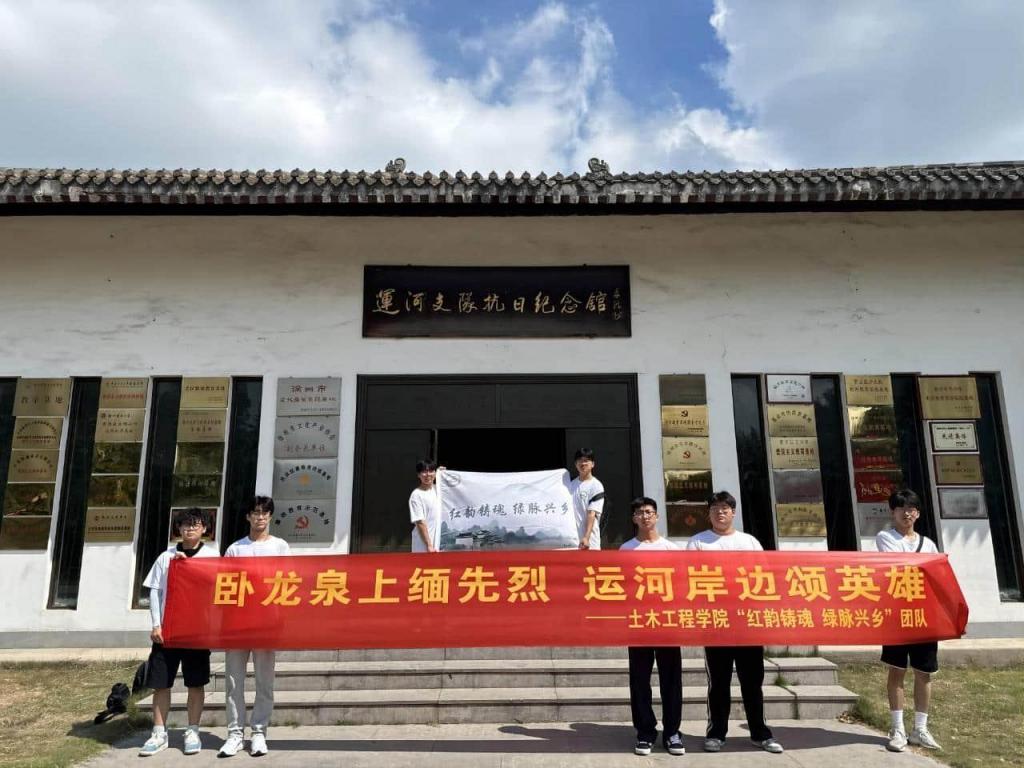 值此之際,徐州工程學(xué)院土木學(xué)院“紅韻鑄魂,綠脈興鄉(xiāng)”實踐團(tuán)隊?wèi)阎缇磁c肅穆之情,奔赴臥龍泉運河支隊抗日紀(jì)念館,開展了一場意義非凡的紅色文化探尋之旅。此次活動不僅是一次對歷史的深情回望,更是青年一代在新時代傳承抗戰(zhàn)精神、勇?lián)鷷r代使命的生動實踐。