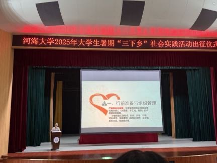7月2日,河海大學(xué)舉行2025年大學(xué)生“三下鄉(xiāng)”社會(huì)實(shí)踐活動(dòng)出征儀式。校黨委副書記、副校長陸國賓出席儀式并發(fā)表講話,“凈碳護(hù)水·綠動(dòng)未來”調(diào)研科普實(shí)踐團(tuán)作為重點(diǎn)團(tuán)隊(duì)代表,應(yīng)邀參與此次啟動(dòng)儀式。