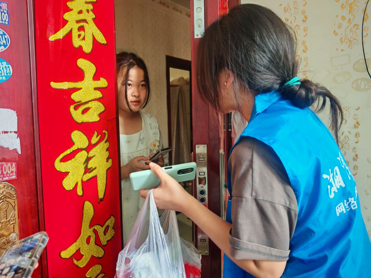 當日,完成清潔任務后,團隊馬不停蹄走進游家鎮易地扶貧搬遷中心安置小區及周邊民居,開展電信詐騙知識入戶宣講。隊員們手持宣傳手冊,一家一戶地敲門宣講,向居民們面對面講解購買網絡虛擬產品時應注意的詐騙手段,提醒大家拒絕不明來源的借貸平臺。對于年齡比較小的孩子,則側重講解不隨意給陌生人轉賬、不亂點不明來源鏈接與紅包、不隨意泄露隱私信息等常識。
