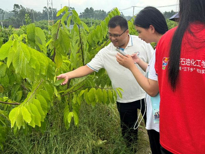 在廣東省鄉村振興駐鎮江鎮幫鎮扶村工作隊的帶領下,實踐團一頭扎進了南果花鄉喜果種植基地,為特色產業“把脈開方”。他們穿梭于果樹間,記錄果實生長數據、拍攝掛果狀態。在林宜章經理的指導下,實踐團體驗疏果、套袋等關鍵環節,了解“一枝一果”標準對品質的提升作用。此外,團隊甩出“組合拳”:設計國風包裝提升“顏值”,排定直播日歷打通電商渠道,開發果醬、凍干片等深加工產品拉低“門檻”——讓“小眾果”快步走向“大眾桌”。