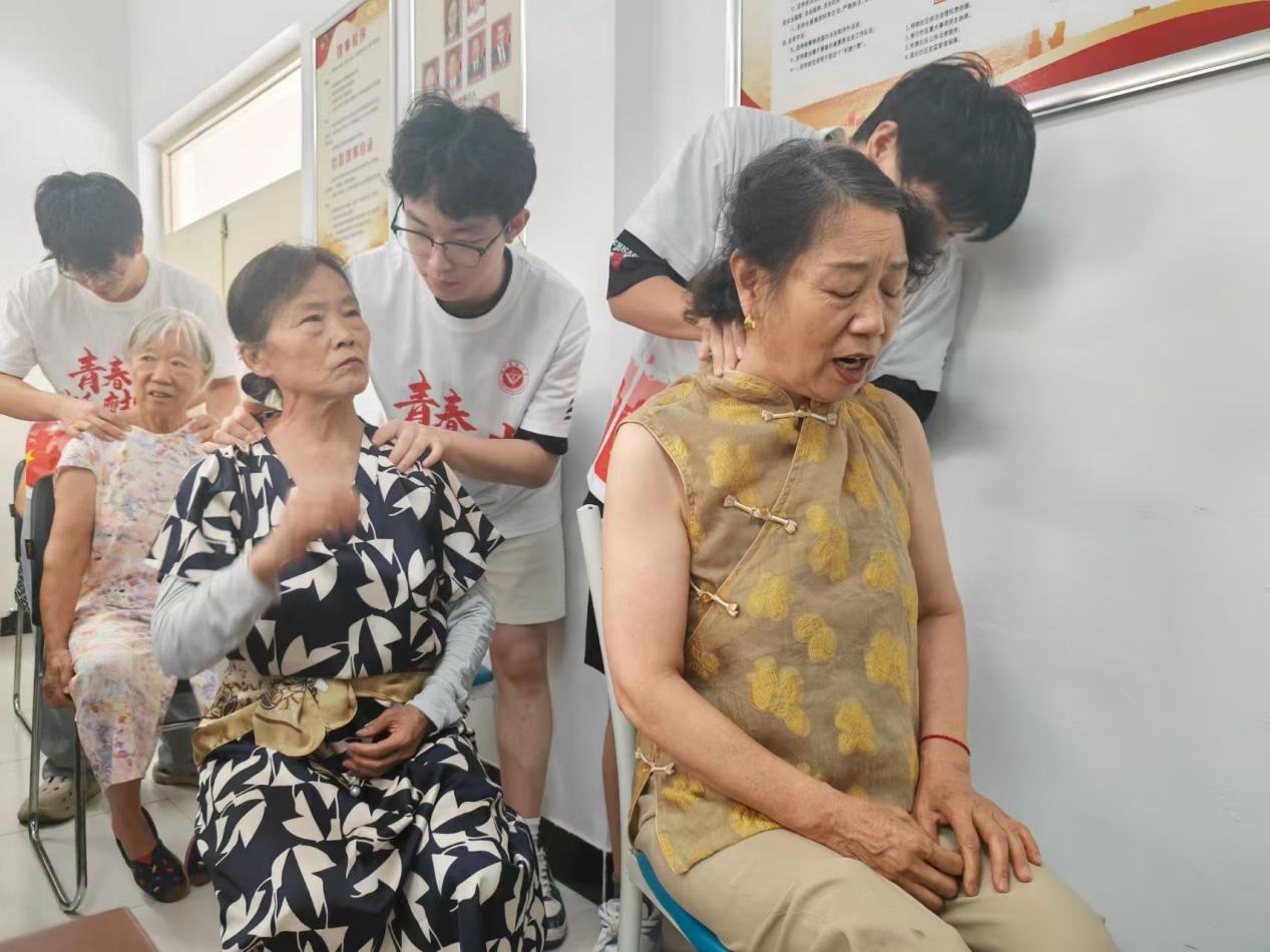 同時(shí),實(shí)踐團(tuán)還邀請(qǐng)徐州醫(yī)科大學(xué)康復(fù)專業(yè)志愿隊(duì)成員為老人提供按摩體驗(yàn)?祻(fù)專業(yè)的同學(xué)們手法嫻熟,他們認(rèn)真地為老人按摩肩部、腰部、腿部,還耐心教授老人一些簡單的自我按摩技巧,如“百會(huì)穴按壓緩解頭暈”“足三里揉按增強(qiáng)免疫力”等,讓健康管理融入老人的日常生活。65歲的張奶奶享受完按摩后,臉上滿是笑意,連連稱贊:“這些孩子手法專業(yè),按完渾身舒適,還教會(huì)我平時(shí)緩解疼痛的辦法,真是太貼心了!”