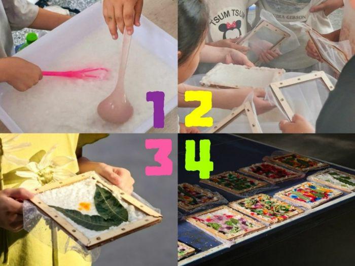課堂采用理論講解與實踐操作相結合的形式。支教團成員們首先演示了完整的造紙流程:從紙漿等原料的預處理,到"舂搗—打漿—抄紙—干燥—揭紙"八大工序,巧妙融合多學科知識,將造紙分為打漿塑魂、抄紙定形、花草賦韻和晾曬期待四個步驟。在創意環節,孩子們用食用色素調制出"星空紫""薄荷綠"等獨特色彩,將科學知識與藝術創作完美結合。"我的'彩虹紙'用了三原色調配,就像做實驗一樣!"支教團老師介紹道。