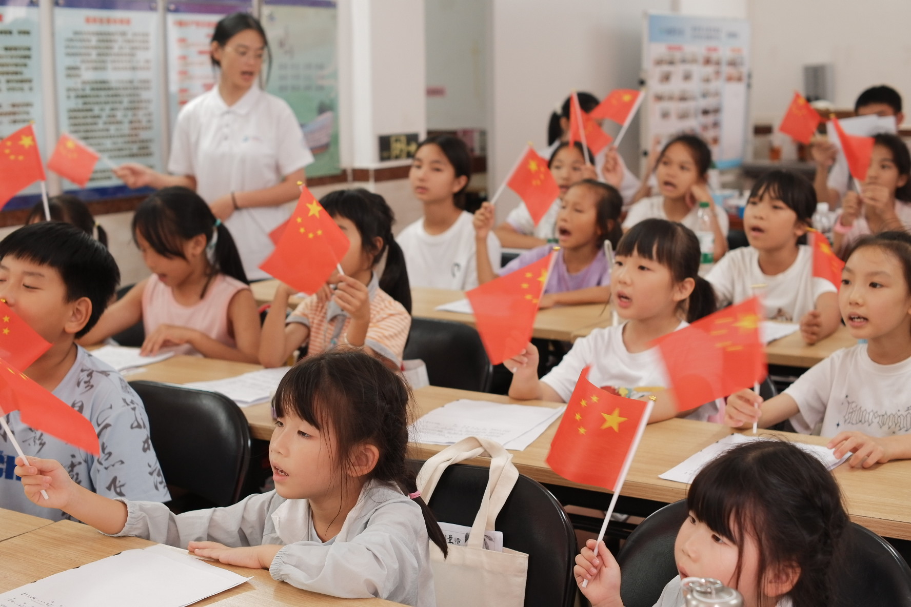 四堂音樂課,《如愿》成夏日背景音。孩子們從跟讀歌詞到流暢合唱,進步藏在課間哼唱中。拿到小紅旗,大家小心護著,排練時揮旗打節拍,教室滿是溫暖的紅。結營齊唱瞬間最動人,童聲伴紅旗,藏著認真與期盼。歌聲雖散,但紅旗的溫度、練唱的專注,已種下心愿,成夏日暖回響。