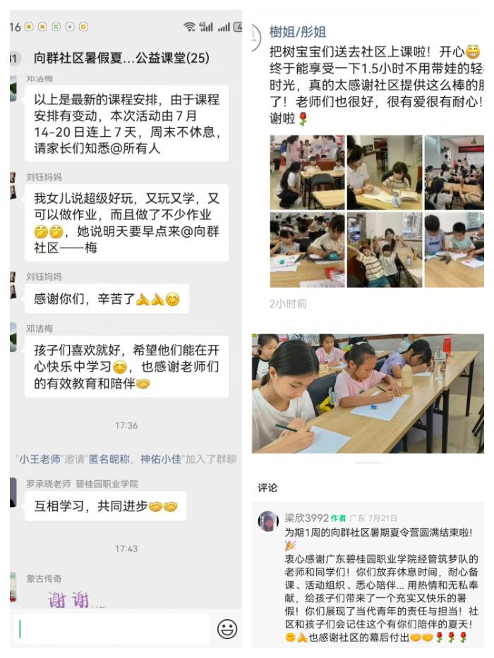 為積極響應廣東省“百縣千鎮萬村高質量發展工程”促進城鄉區域協調發展的號召,7月14日至7月20日,廣東碧桂園職業學院經管筑夢突擊隊走進清遠市清城區鳳城街道向群社區,開展了為期一周的“百千萬工程”支教活動。本次支教旨在發揮高校人才優勢,為社區青少年帶去知識與關懷,以實際行動響應城鄉發展號召,助力基層教育發展。