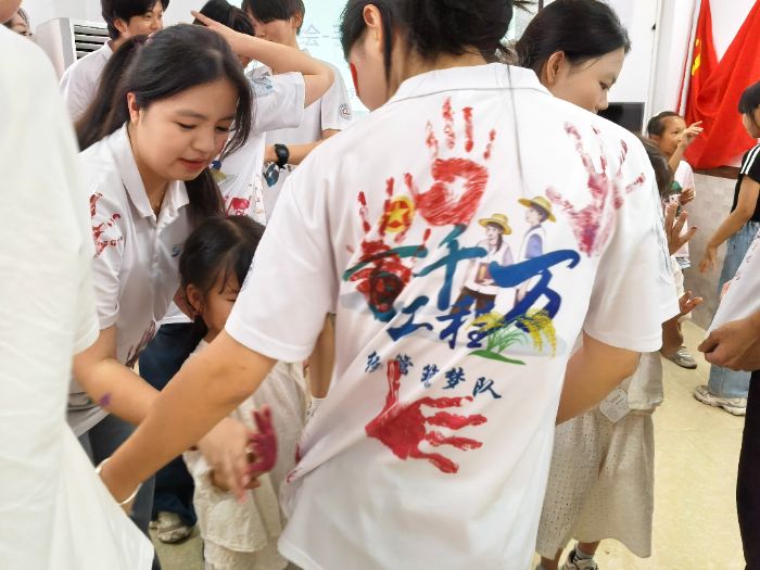 丙烯顏料擠在調色盤,似揉碎彩虹。孩子們踮腳,將蘸滿顏料的小手按在隊服上,胖乎乎的手印錯落,帶著指紋,如獨特印章。手印連成片,像花像星。老師看著,心也變軟,這隊服成了裝滿童真與牽掛的“時光膠囊”。