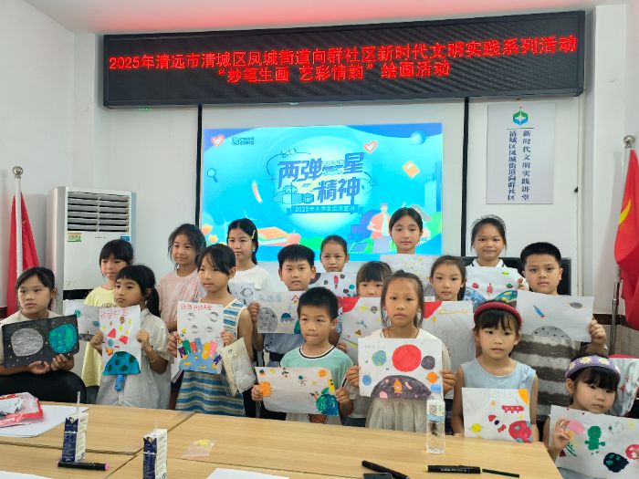 7月15日,廣東碧桂園職業學院“經管筑夢”百千萬工程突擊隊赴向群社區開展“兩彈一星”精神宣講。志愿者由生活用電講起,引入核能、講述元勛故事,闡釋精神內涵。繪畫環節,孩子們踴躍參與,用畫筆抒發對宇宙的想象與愛國情懷。