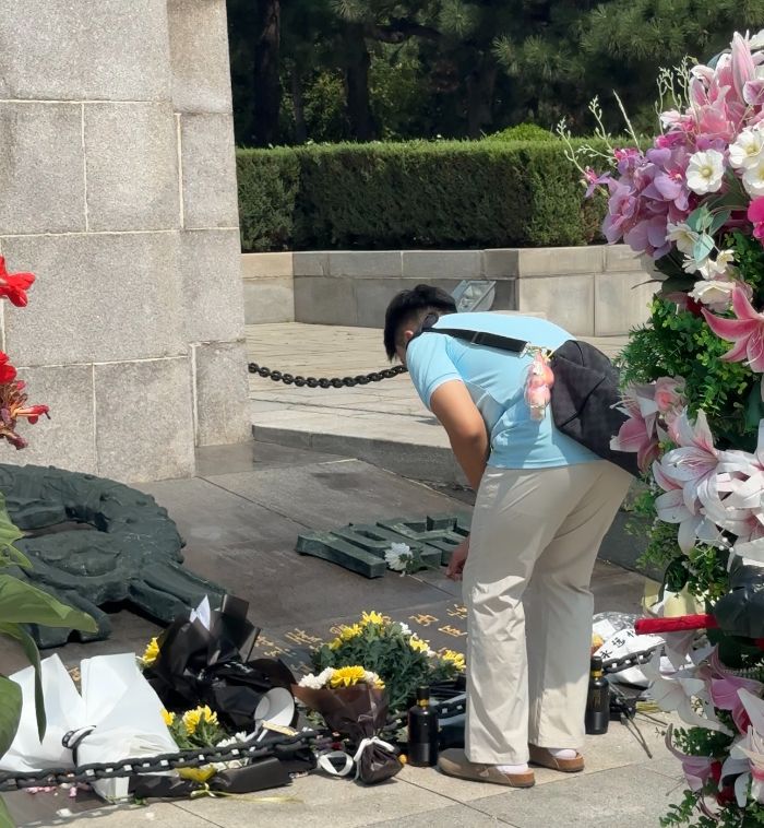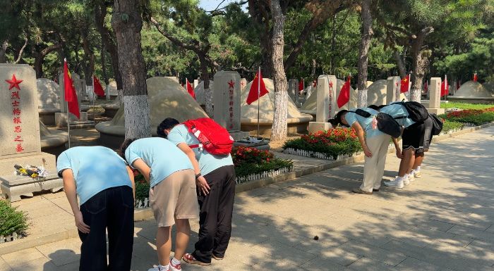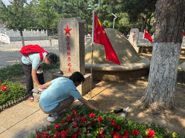 三、走進(jìn)抗美援朝陵園,緬懷先烈,不忘初心“青山有幸埋忠骨,松柏?zé)o言祭英魂。”在抗美援朝陵園,隊(duì)員們懷著肅穆的心情,整齊列隊(duì)向烈士紀(jì)念碑敬獻(xiàn)鮮花,鞠躬默哀。隨后,大家手持抹布,小心翼翼地為每一塊墓碑擦拭塵土。此次緬懷活動(dòng),讓隊(duì)員們明白:每一塊墓碑背后,都是一段可歌可泣的英雄故事;每一次擦拭,都是對(duì)先烈的承諾——“我們會(huì)帶著你們的理想,繼續(xù)前行”。