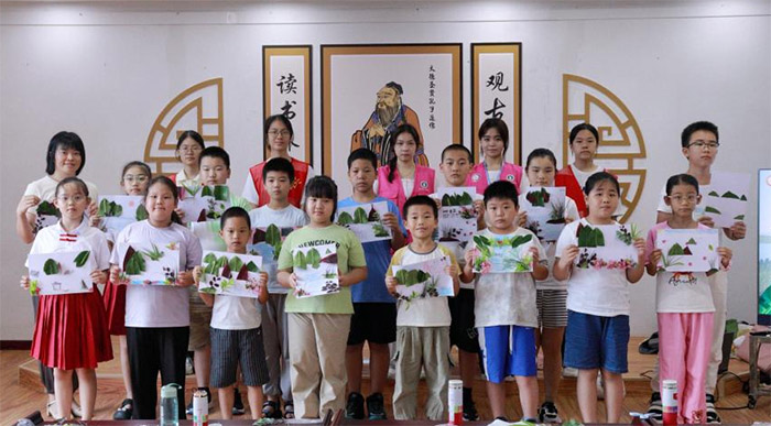 (圖為“萬綠湖樹葉拼詩”國學講堂課堂圖片)