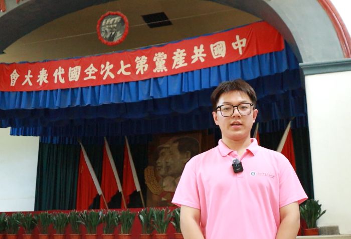 圖4 實(shí)踐團(tuán)成員在中共七大舊址講授微團(tuán)課