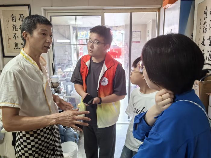 圖為實踐團與小龍蝦餐飲從業者進行訪談。井安康 供圖。