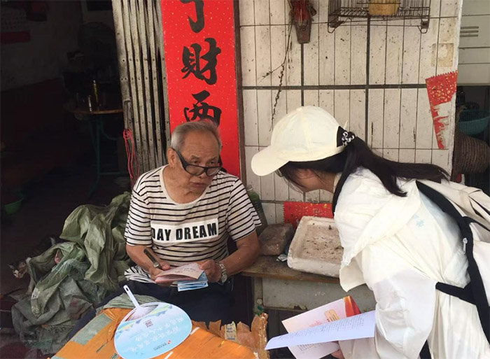 ▲圖為宣講隊隊員在街頭為鄰坊答疑解惑
