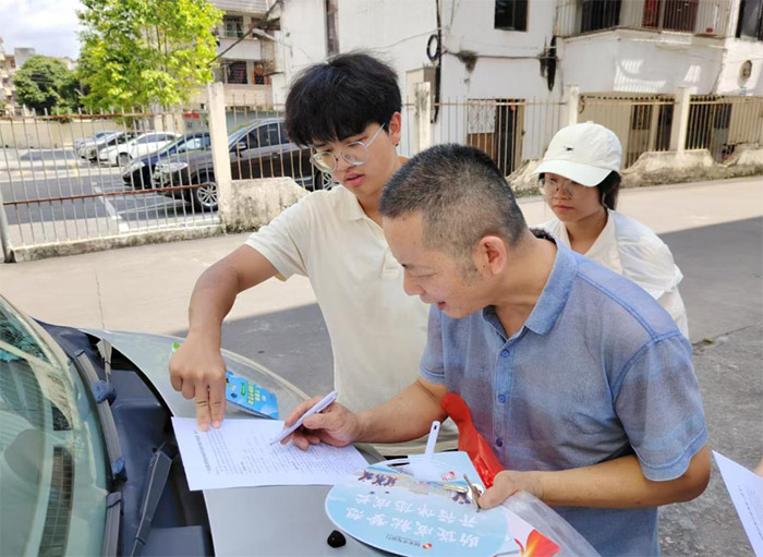 街頭咨詢:政策宣傳多面覆蓋 在入戶走訪后,為了更精準地把握村民對資助政策的知曉程度和實際需求,服務隊員們還精心準備了家長和學生兩版調查問卷。他們真誠邀請村民參與填寫,并俯身傾聽,筆尖流淌著最真實的民情民意。這一張張問卷,一次次面對面的交流,不僅為政策優化收集了詳實的一手資料,更在無形中拉近了心與心的距離,讓信任的藤蔓悄然生長。村民張大哥填完問卷后感慨道:“這個調查做得好!能讓上面知道我們老百姓的想法,政策才能更貼心。”趙奶奶則笑著夸贊:“看你們這些娃兒做事這么認真上心,國家的政策肯定會越來越周到,越來越好啊!”