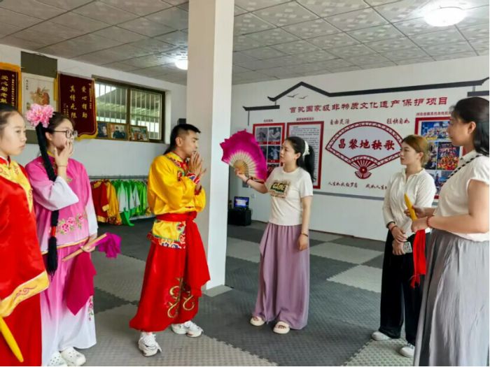 2025年7月8日至11日,河北傳媒學(xué)院舞蹈藝術(shù)學(xué)院暑期“三下鄉(xiāng)”實(shí)踐活動小分隊(duì)——“傳承夢之隊(duì)”,在指導(dǎo)教師劉曉雯、吳瀟溪的帶領(lǐng)下,走進(jìn)河北秦皇島昌黎縣昌黎地秧歌非遺基地,開展了一場集非遺探訪、技藝研學(xué)、創(chuàng)新傳播于一體的暑期“三下鄉(xiāng)”社會實(shí)踐活動。此次活動旨在深入探尋國家級非物質(zhì)文化遺產(chǎn)“昌黎地秧歌”的傳承故事,以青春力量為傳統(tǒng)藝術(shù)注入新活力。
